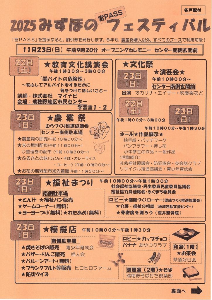 11月23日(日)に開催される宇都宮市瑞穂野地区市民センター文化祭「みずほのフェスティバル」で今年も演奏します!